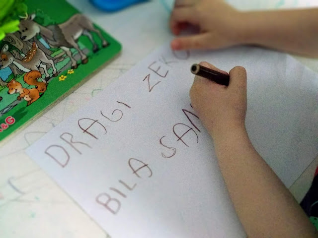 Djeca nisu spavala po danu, tj. dok sam nju poslala na spavanje, on se već probudio. Juraj se većinu dana rušio od umora, ali Franka je svejedno stalno plesala i molila me da obučemo suknjice (ona pink, ja svoju crvenu - nije da ju imam gdje nositi) i da plešemo na I wanna dance i Ti si moja čokolada. Ručak je ispao grozno, krumpir u tepsiji se uopće nije ispekao do kraja, a oni su ga pojeli više nego ikada ranije. Juraj je kupus salatu jeo prstima, iz velike posude za salatu.